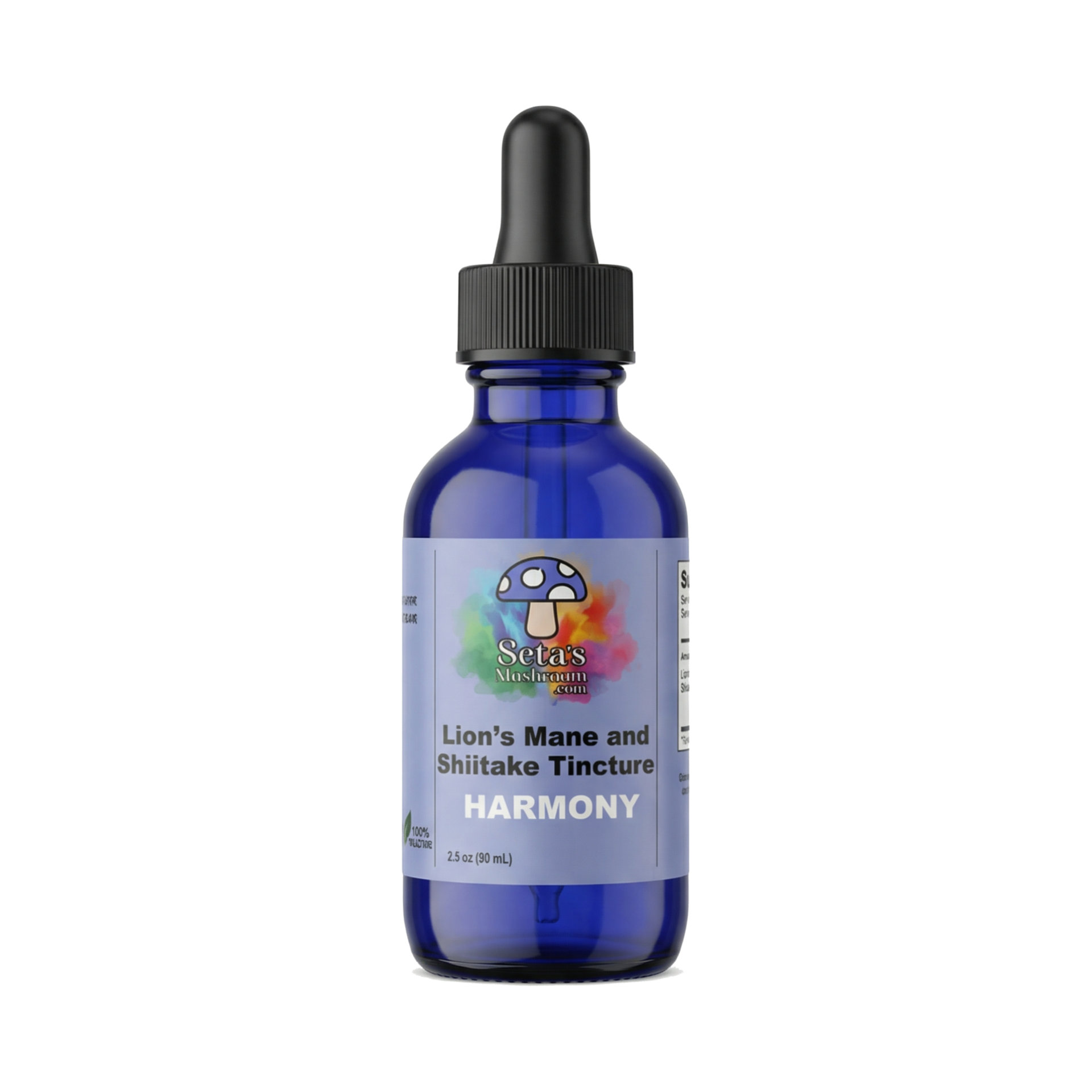 100% organic mushroom (Lions Mane & Shiitake) double (Water (H20) / Ethanol (C₂H₅OH)) extraction blend, carefully formulated for maximum potency